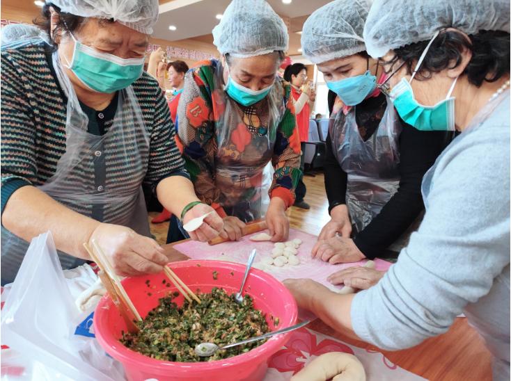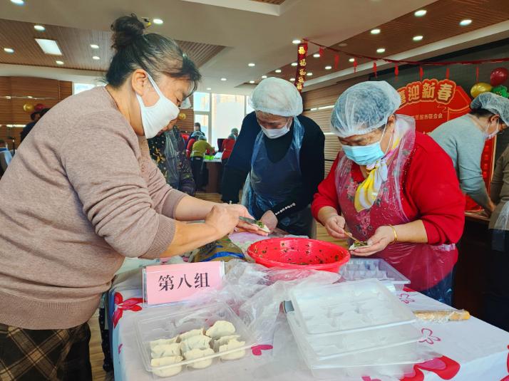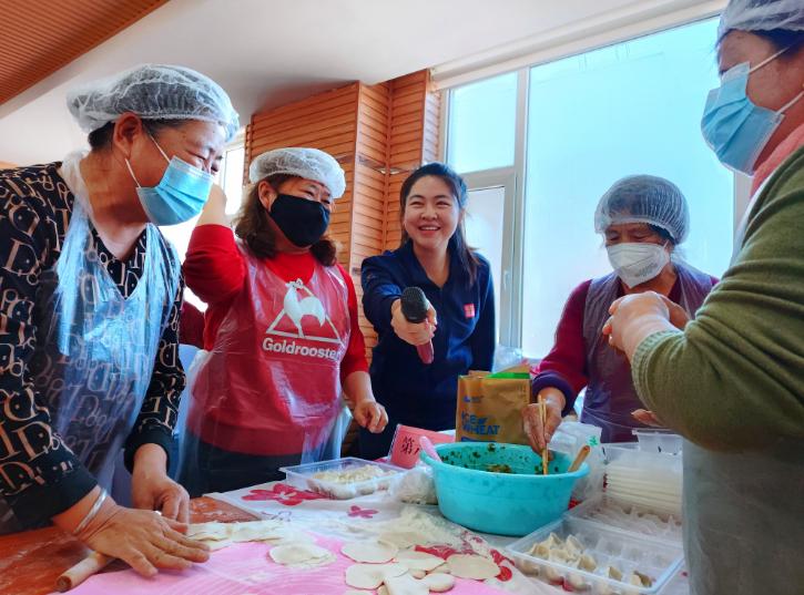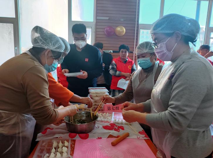 当日一大早,社区工作人员和志愿者们便提前布置好了现场,拌好了饺子馅,并准备好包饺子的材料和工具。