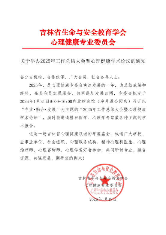 关于举办2025年工作总结大会暨心理健康学术论坛的通知