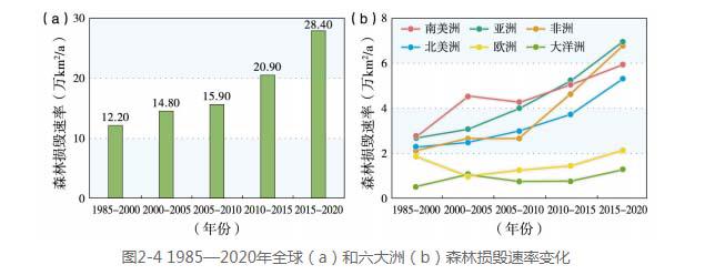 森林恢复是陆地生态系统碳吸收增加的主要来源之一。报告显示,1985—2020年,全球森林损毁与森林恢复在不同区域同时发生或同一区域交替出现,但恢复速率仍低于损毁速率。屋顶、停车场及道路等渗透率较小的表面,是城市化最显著的特征。监测期内,这种不透水面增幅达104.43%。全球森林损毁和不透水面扩张带来的结果是碳损失(陆地生态系统固定的碳重新释放到大气中)呈加速增长态势。